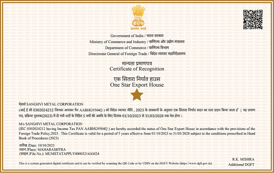 We at "Sanghvi Metal Corporation," a prestigious company founded in 1971, manufacture, export, wholesale, and trade the best-in-class assortment of metal products. All of our products are in accordance with the established industry quality standards because they were created utilising premium quality basic materials and cutting-edge machinery. Our goods come in a variety of sizes and qualities. Additionally, we provide customised solutions based on the specific needs of the client.